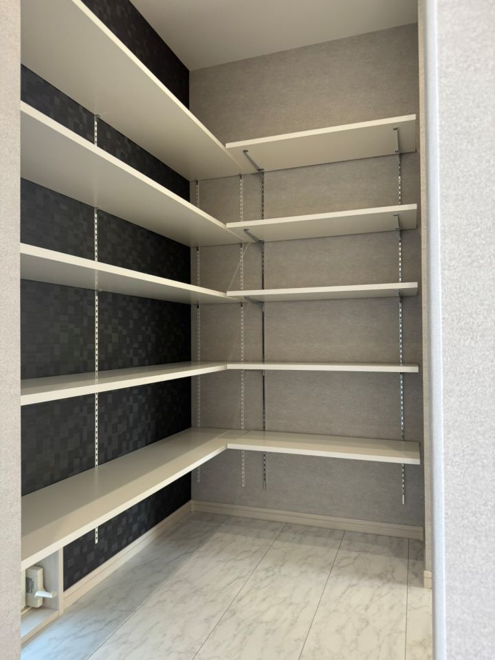ウォークインクローゼット、洗面脱衣所、そしてバスルームを一つのエリアに集約し、効率的な回遊動線を実現した設計です。この設計によって毎日の家事の負担が大幅に軽減されます。特に、ウォークインクローゼットの出入口を2ヶ所設け、リビングからのアクセスも考慮し、機能性と収納力を両立させました。これにより、家族全員が使いやすく、必要な物をすぐに取り出せる環境が整っています。 - デッドスペースの有効活用で“見せない収納”