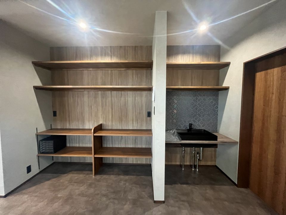 - お施主様の好きなスターバックスのカフェをイメージし、モノトーンカラーと木目柄を基調とした、落ち着きのあるモダンな空間に仕上げました。