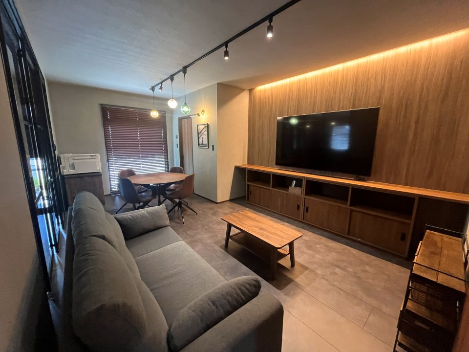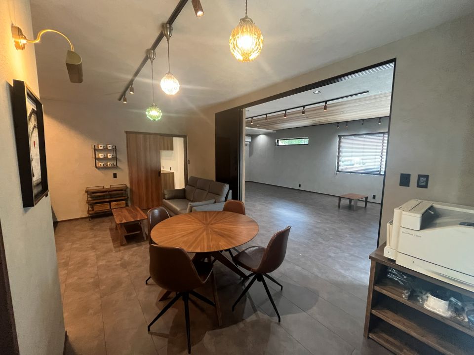 待合スペースとしても利用しているリビングには、デザインにこだわったおしゃれなペンダントライトや間接照明を配置し、やさしい光が室内を包み込み、くつろぎのある空間になっています。