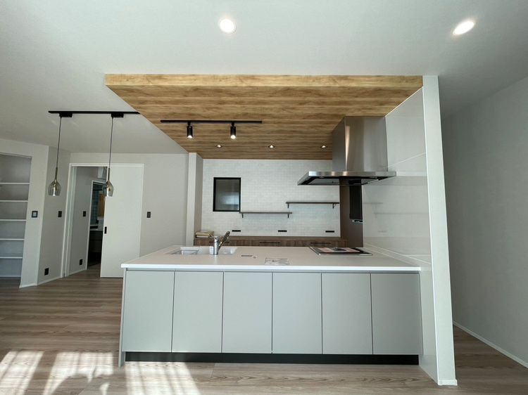 - キッチンは外の景色まで見渡せる配置とし、家事をしながらも開放感を感じられる空間に。デザイン性のあるカフェ風キッチンが、暮らしの中心となっています。
