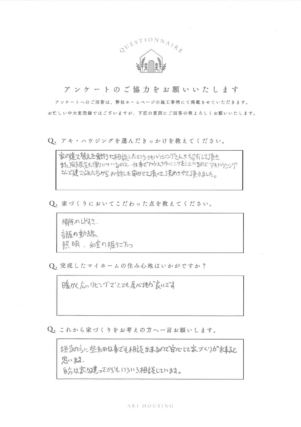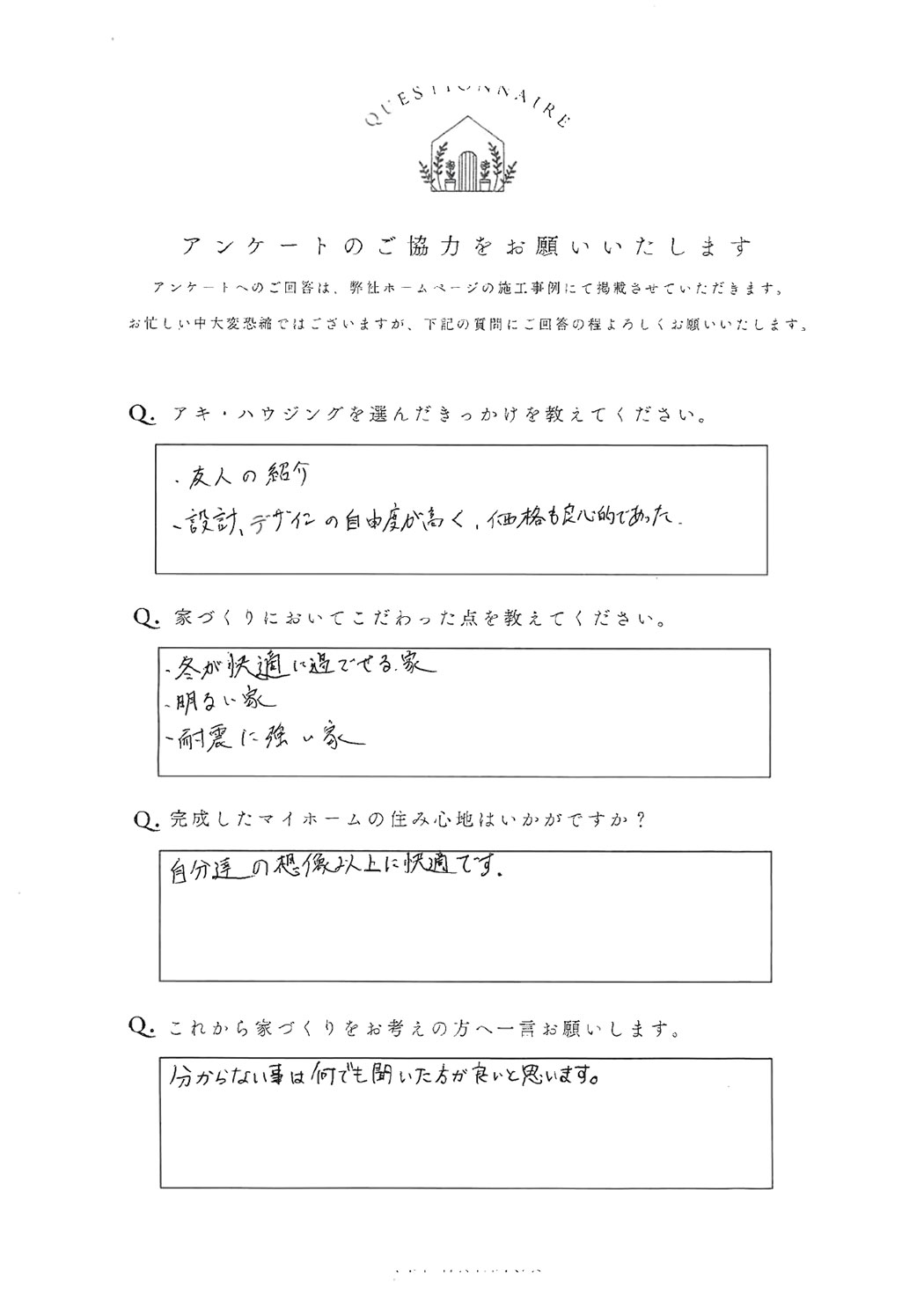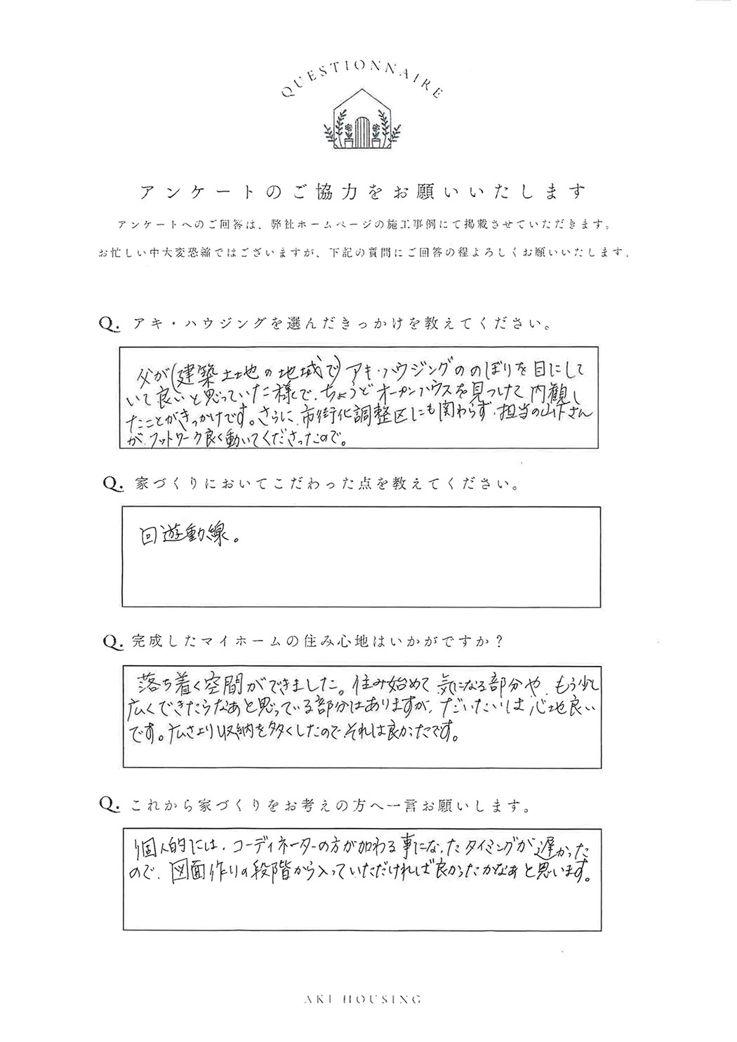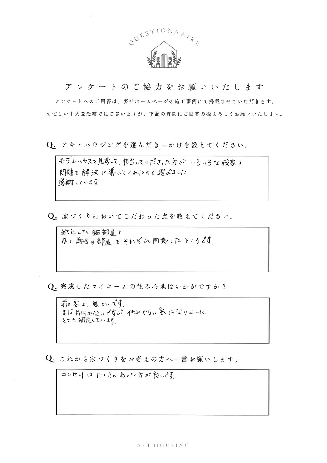 アキ・ハウジングへは下記よりお気軽にお問い合わせください。モデルハウスの来場予約・資料請求・メンテナンスのご依頼などにもご利用ください。