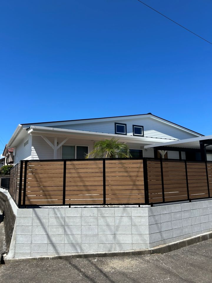 - カリフォルニアスタイルの広いお庭にはウッド系のフェンスを採用。景観を損ねず、プライバシーに配慮したデザインがお住まいの雰囲気にとてもマッチしています。
